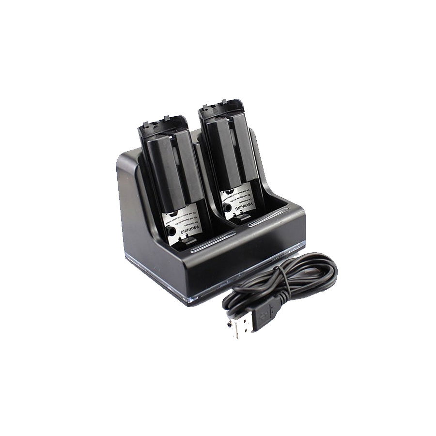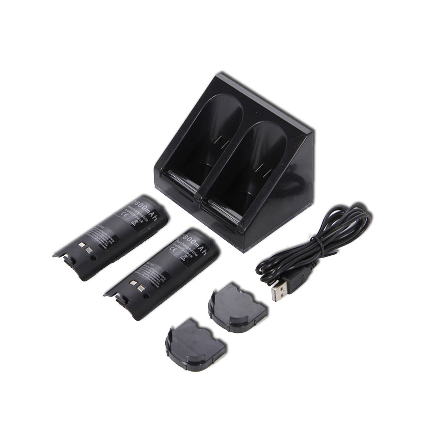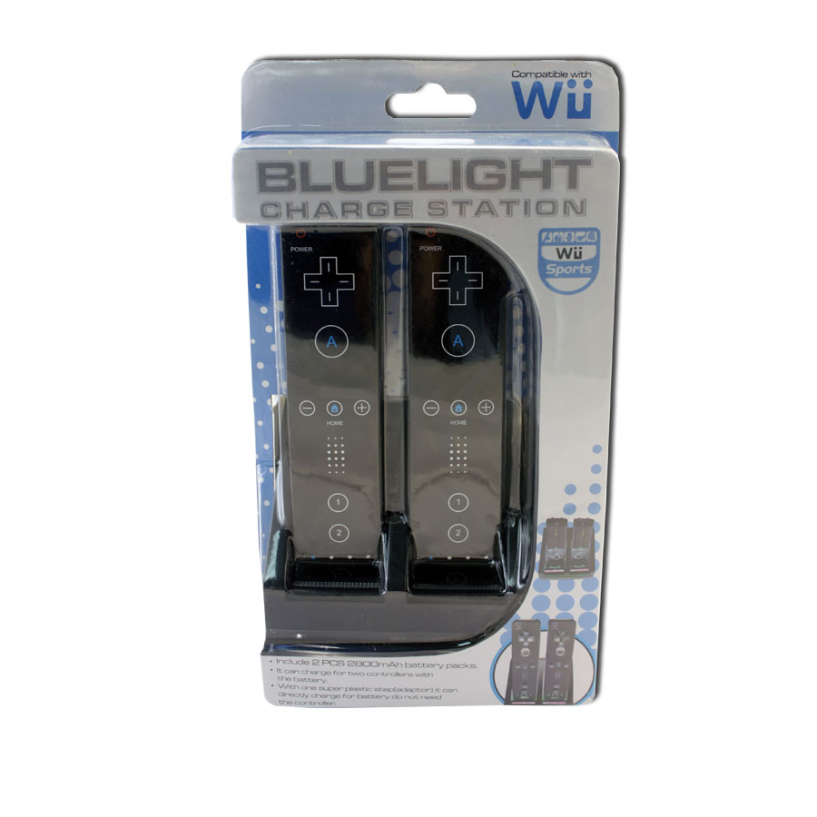 Set formado por un soporte con función de cargador para 2 mandos Wii Remote de la consola Nintendo Wii y Nintendo WiiU. No requiere fuente de alimentación externa, obtiene la energía al conectar a algún puerto USB el cable que viene incluído con el accesorio.