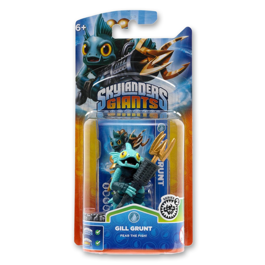 Da vida a Gill Grunt en el juego Skylanders. Con tus personajes Skylanders podrás jugar en cualquier consola. La misma figura funciona en todas las consolas, porque tiene cerebro y recuerda su progreso; al igual que el oro y los objetos conseguidos. Puedes llevarte a tus personajes a casa de tus amigos, aunque tenga una consola diferente a la tuya, y seguir jugando. Tú muñeco aparecerá como personaje del juego con las habilidades ganadas en la última partida. Además, cada personaje tiene un código web para acceder a algunos mini juegos online. Si eres fan de Skylanders no puedes dejar pasar esta oportunidad de obtener tu figura de Gill Grunt.