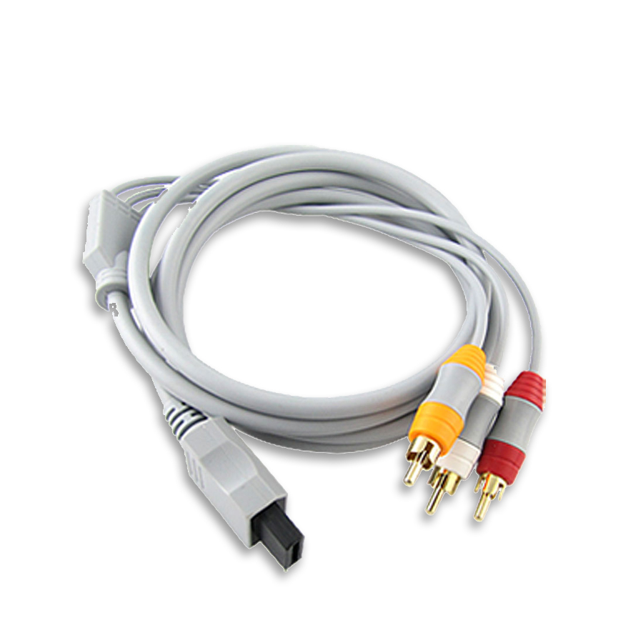 A conexão do cabode consoleNintendo Wiitelevisorescomentrada de áudioe vídeo composto.Handyse você tiver perdidoou danificadocabo detrazerseu console eprecisam ser substituídas. detalhe: