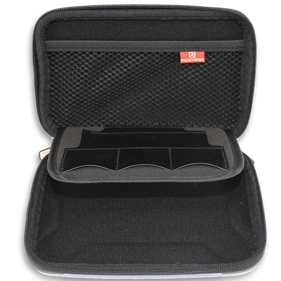 • Ele contém um bolso para acessórios, jogos, cartões de memória, XL fones de ouvido estéreo e cabo USB