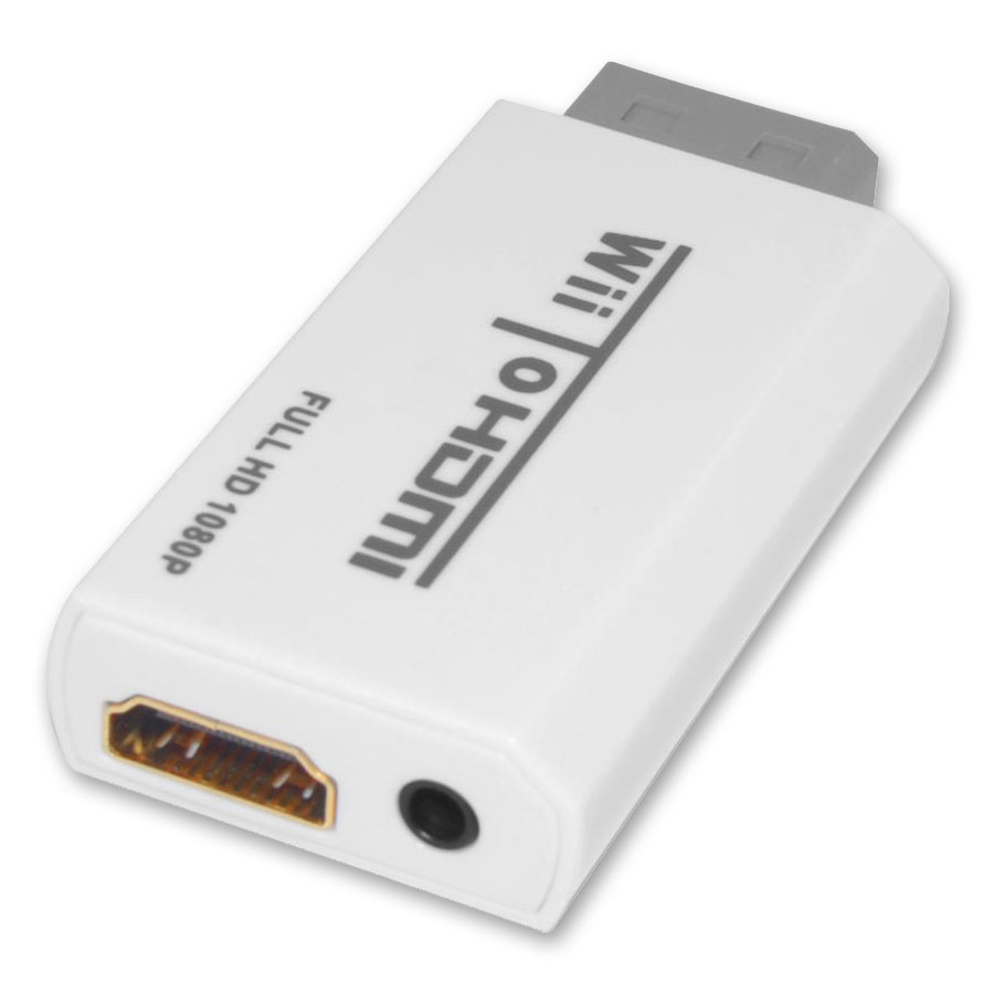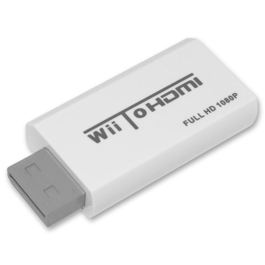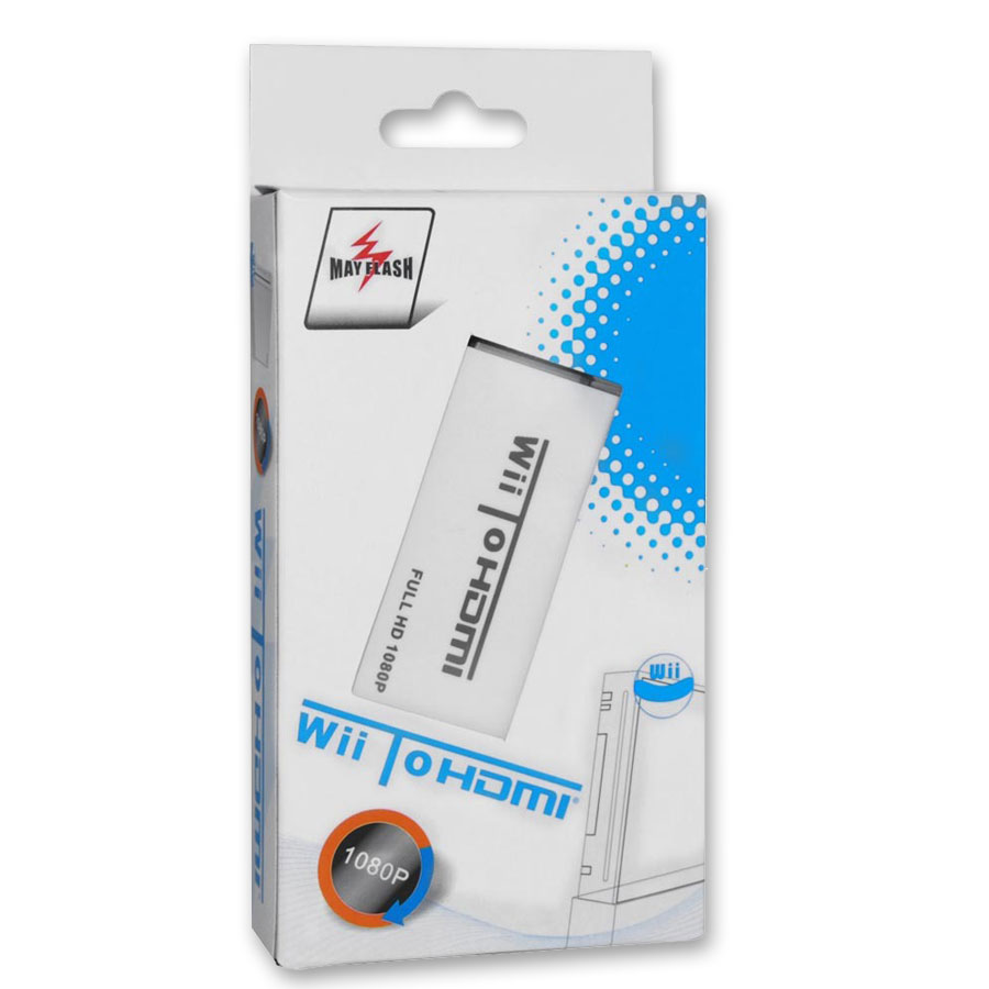 HDMI Conversor para Wii. Converte saídas de vídeo e formato 1080p de áudio digital e suporta todos os formatos de imagem compatíveis com Nintendo Wii.