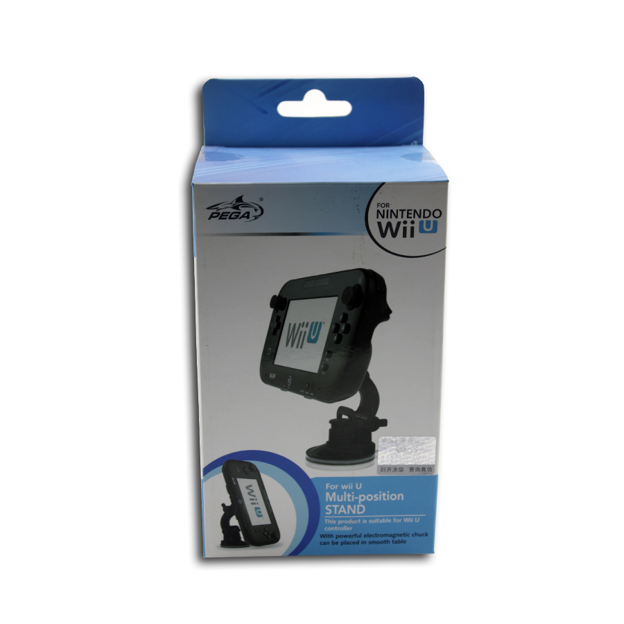 Soporte de múltiples posiciones para gamepad de Nintendo Wii U. Apto para apoyar el gamepad durante el juego o reposo, ya que permite muchas opciones para posicionar el mando de la consola Nintendo Wii U. Incorpora una base con ventosa para poder fijar el soporte de tu gamepad para una sujección fija y segura en una superficie lisa.